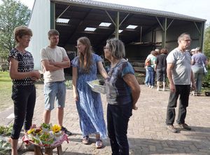 Op het erf van Jos en Corrie was het een aangenaam samenzijn met hun kinderen/kleinkinderen, hun poes en de schapen, oude machinerieën in de schuur en de feesttenten van Festyland op de achtergroen. Na de ruil nog gezellig met een kop koffie of thee in hun kleurrijke tuin.